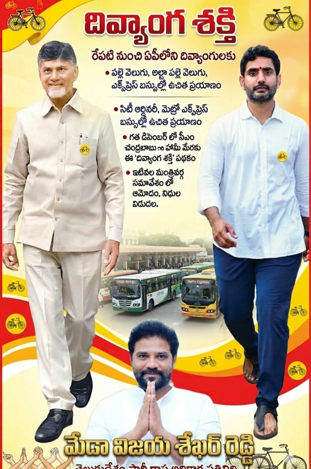 ఈ సందర్బంగా మేడా విజయశేఖర్ రెడ్డి మాట్లాడుతూ దివ్యాంగుల సాధికారత: ఉచిత ప్రయాణ సౌకర్యం కల్పించడం ద్వారా దివ్యాంగుల ఆర్థిక భారాన్ని తగ్గించడమే కాకుండా, వారు సమాజంలో ఆత్మగౌరవంతో స్వేచ్ఛగా తిరిగేలా ఈ పథకం దోహదపడుతుందని